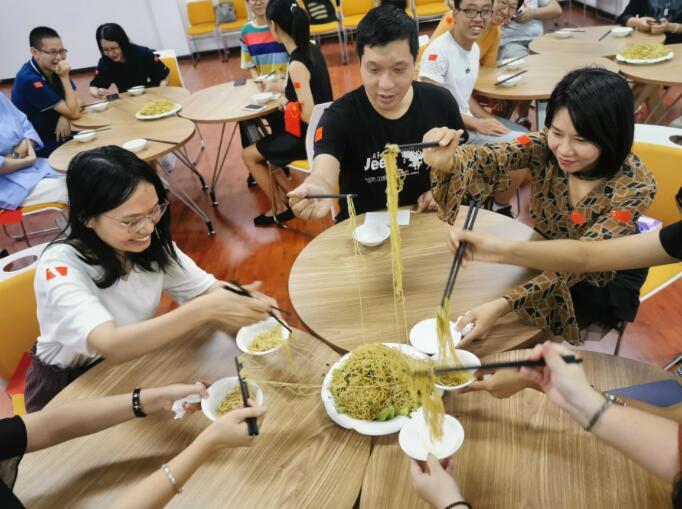 「我小時候是在加拿大長大的,在那邊吃麵包比較多,麵食接觸得比較少。在這個喜迎國慶的日子裏,我們公司組織在這裡創業的小夥伴們一起吃這樣一碗同心面,讓大家感受家的溫暖,感受到祖國飲食文化的博大精深。」珠西創谷首席商務官鄧肇基說。