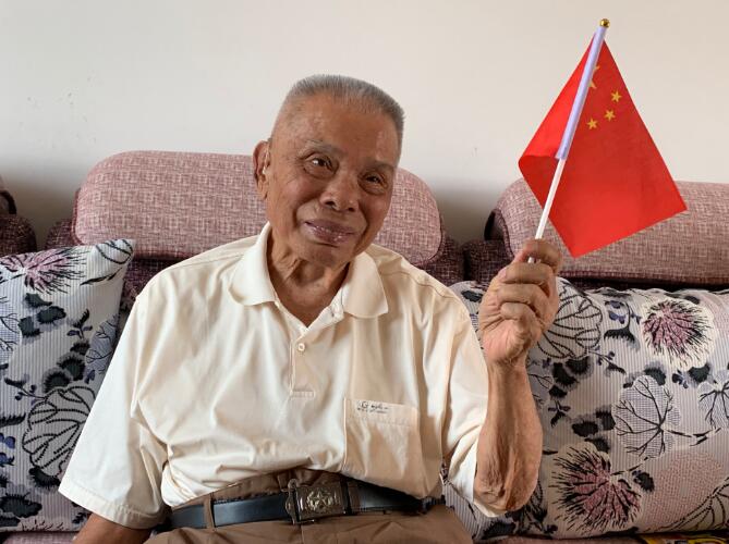家住蓬江區廣新路、今年96歲高齡的離休幹部黃友是一名退伍老兵。在10月1日這個特殊的日子裏,黃友老人特別興奮,早早穿戴整齊,坐在沙發上等待着觀看國慶閱兵式和首都群眾慶典活動。