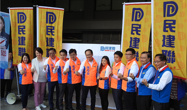 民建聯兩個地區支部成員都在昨日報名參加區議會選舉,包括中西區及大埔。該黨中西區支部派出7名成員參選,其中陳學鋒(堅摩)、張國鈞(西環)、楊學明(水街)、楊開永(觀龍)是競逐連任;其餘3位參選的則是社區幹事,分別為張嘉恩(東華)、莫淦森(半山東)及劉天正(西營盤)。他們昨早到海港政府大樓報名,並舉行造勢活動。民建聯主席李慧琼、會務顧問譚耀宗及葉國謙都有到場站台。