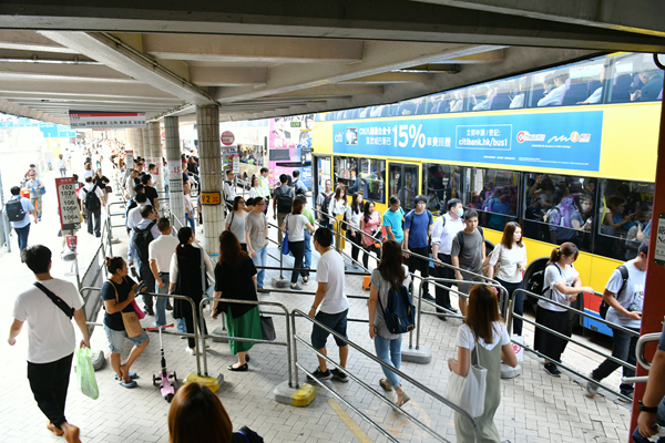 港鐵昨日重開大部分車站,當中馬鞍山線全線9個車站有5個關閉,在馬鞍山市中心巴士總站,早上有大批市民排隊等候過海巴士,前往沙田、大圍和大埔等的巴士、小巴線大排長龍「打蛇餅」。在繼續封閉的大埔墟站,居民須改乘巴士或到同區的太和站上車,昨早繁忙時段,大埔廣福道巴士站等巴士的人明顯較平時多,途經的巴士不少都已站滿乘客,現場有小巴及巴士公司職員協助安排人流,秩序大致良好。