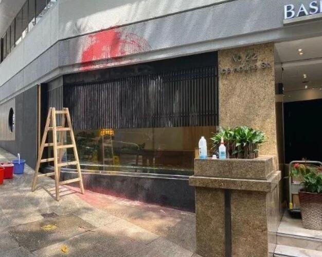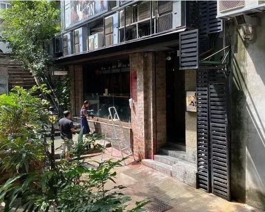 位于歌赋街29至31号的日本料理店被泼漆。图源:港媒