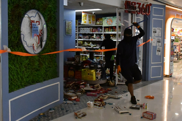 暴徒在店舖肆意打砸。 馮瀚文攝