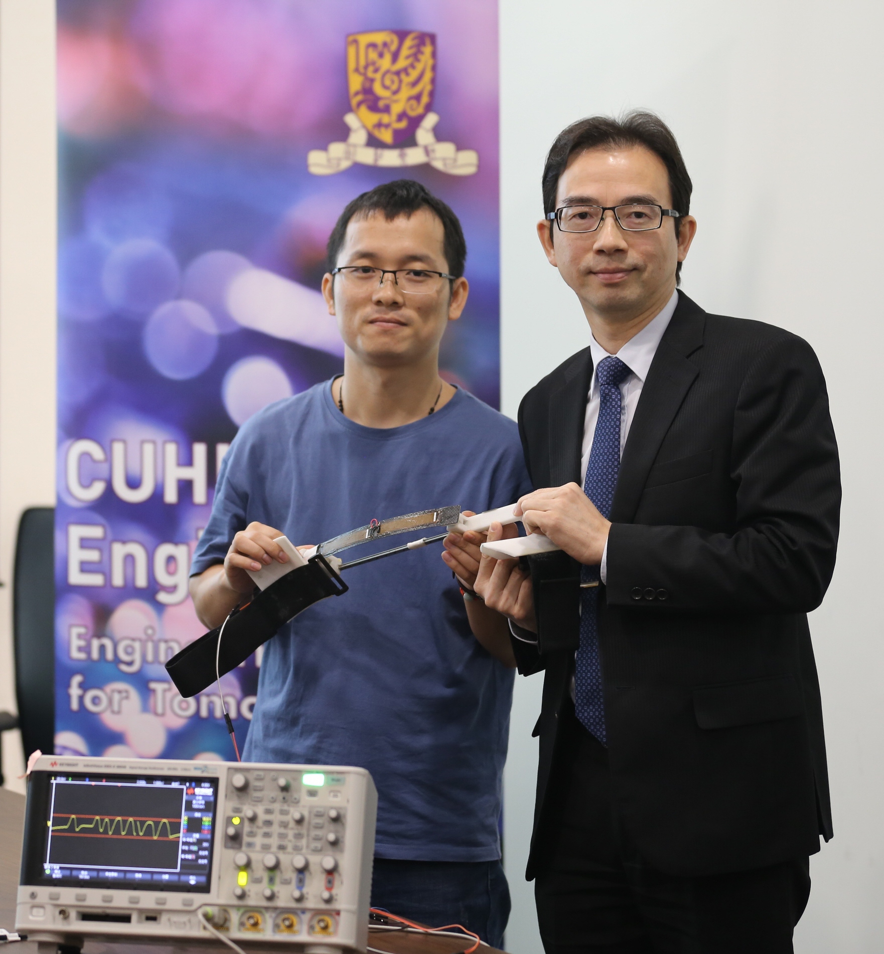 由中大機械與自動化工程學系的團隊研發具彈性的「壓電纖維」裝置,長約27厘米,如一瓶小型樽裝水重,使用者只須慢跑10分鐘,便能為智能電話提供1%的電力。原理是利用人體做出自然彎曲及伸直動作,將動能轉化為電力。
