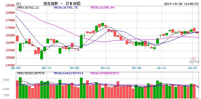 10月30日消息,周二美股小幅收跌,道指跌约20点,纳指跌0.6%。区块链概念股大跌,迅雷收跌逾16%。今日早盘,恒指低开低走。午后恒指跌幅扩大,截至收盘,港股恒指跌0.44%报26667.71点,国企指数跌0.64%,报10479.09点。红筹指数跌1.2%,报4247.38点。
