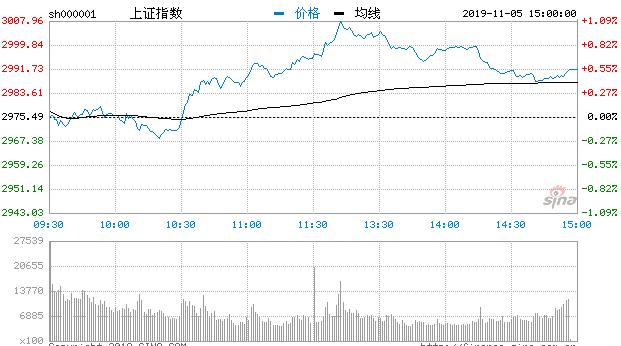 11月5日消息,早盘三大股指小幅高开后短暂维持窄幅震荡,随后券商、银行等金融权重板块发力,带领沪指快速走强,上证50指数(3039.9772, 17.70, 0.59%)盘中创出年内新高,创业板指则相对较弱,小幅跟涨。午后两市短暂拉升,沪指盘中突破3000点,深成指、创业板指亦同步跟涨,但资金承接力度较弱,两市冲高后再度回落。整体上市场氛围一般,涨跌个股持平,成交量没有明显放大。北向资金净流入超50亿元。截止收盘,沪指报2991.56点,涨0.54%,深成指报9938.61点,涨0.71%;创指报1713.29点,涨0.79%。