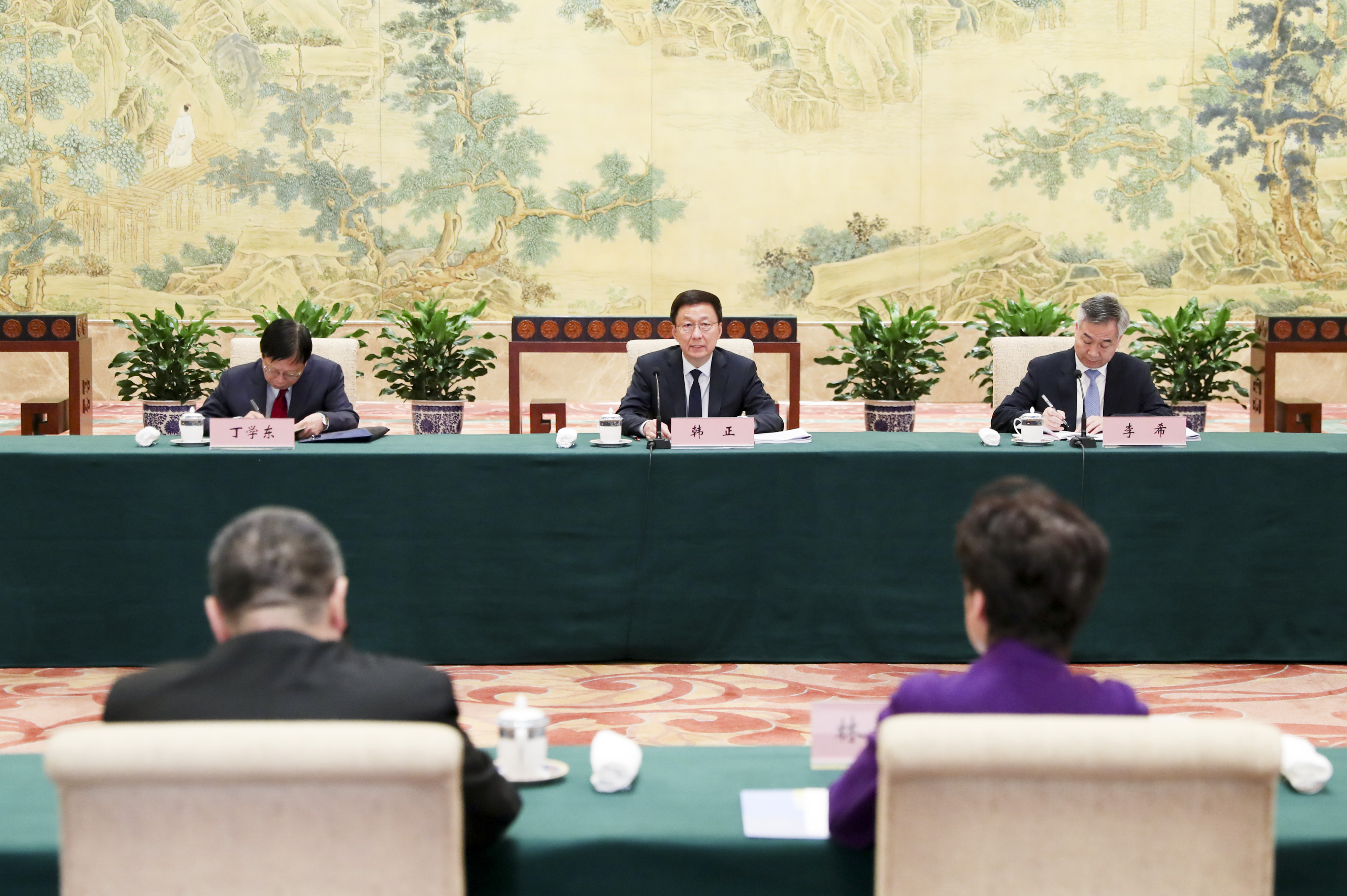韓正表示,黨的十九屆四中全會明確提出,堅持「一國兩制」,保持香港、澳門長期繁榮穩定,促進祖國和平統一,是我國國家制度和國家治理體系的顯著優勢之一。我們要全面準確貫徹「一國兩制」方針,始終牢記使命,堅定支持香港、澳門融入國家發展大局,讓港澳同胞同祖國人民共擔民族復興的歷史責任、共享祖國繁榮富強的偉大榮光。要始終堅持在「一國兩制」框架下,按照憲法和基本法來推進工作,在「一國」的前提下,充分發揮「兩制」的優勢,發揮好港澳的獨特作用,打造全國擴大開放、實現高質量發展的標桿。