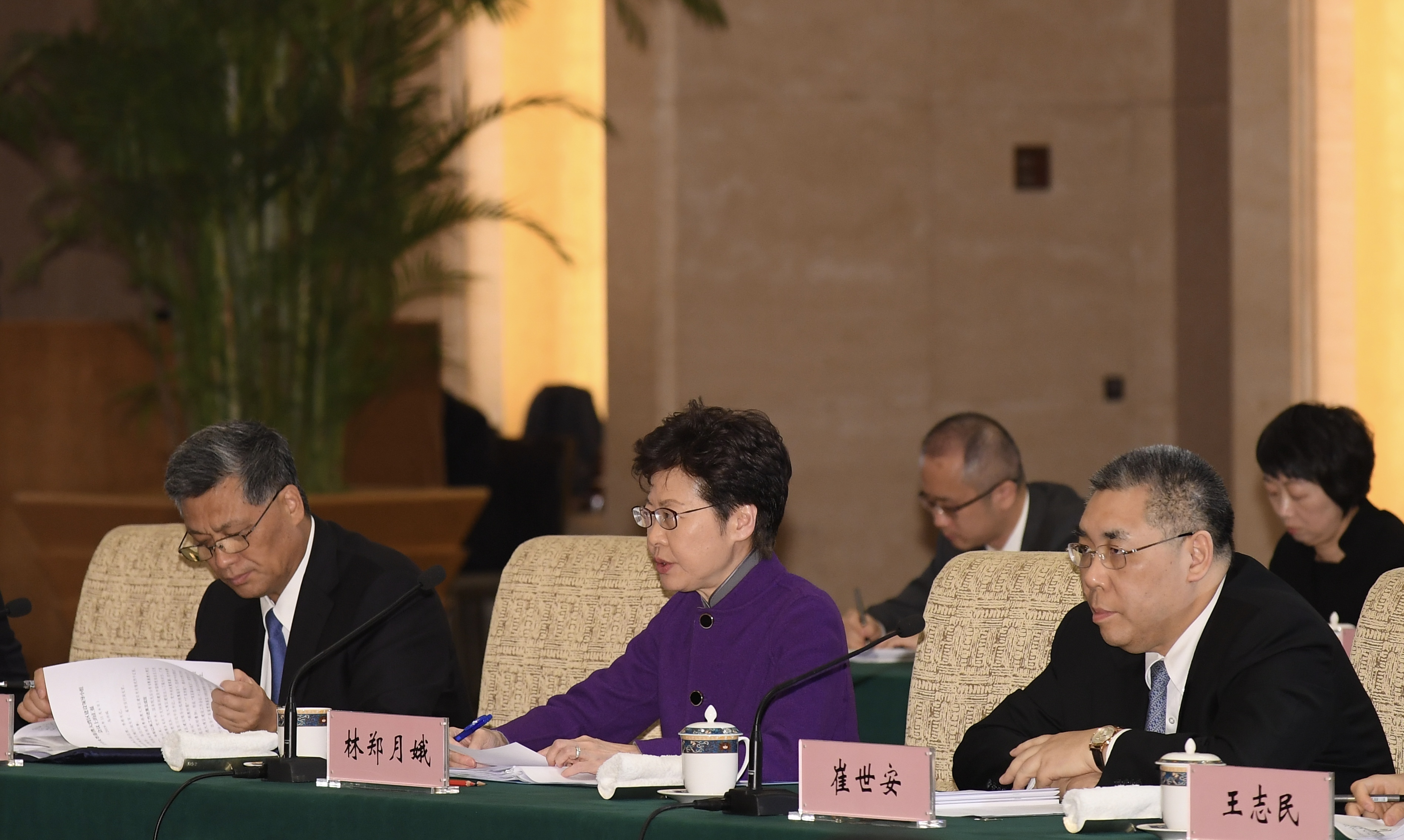 林鄭表示,自今年6月以來,香港面對前所未有的衝擊,香港特區政府堅決維護法治,嚴格按照法律,採取果斷的執法措施,遏止違法行為,維護社會安寧,保障市民在生活上的權利和自由。與此同時,香港特區政府會與社會各界用平和理性的態度,透過溝通,共同面對各種社會的矛盾,讓香港繼續向前邁進。建設粵港澳大灣區,為香港發展拓展新空間、增添新動力,讓香港市民特別是年輕人獲得更多的發展機會。過去幾個月,特區政府既認真研究各個部委提出的事項,也主動就一些便利措施提出建議,供領導小組的其他成員單位考慮,期望這次會議一如既往能進一步落實惠及市民和促進經濟活動的措施。