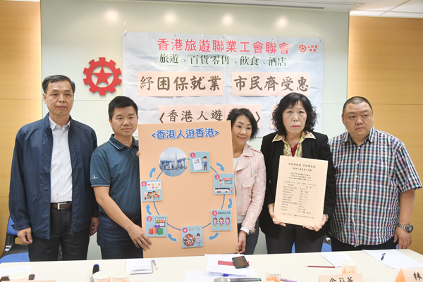 工聯會屬會香港旅遊聯業工會聯會建議政府撥1 億元,推行「香港人遊香港」計劃,資助市民參加本地一天團。記者蔡啟文攝