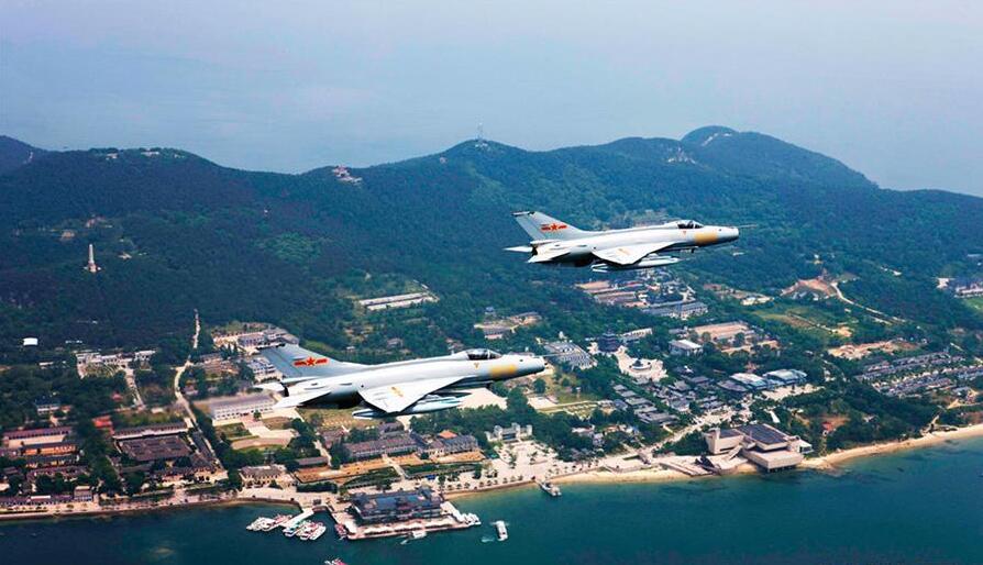 2012年,空军歼-7战机巡航沿海城市。 新华社发(崔文斌 摄)