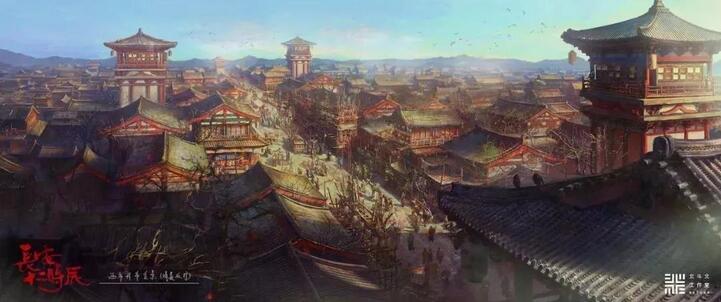 电视剧《长安十二时辰》西市概念图。图/北斗北工作室