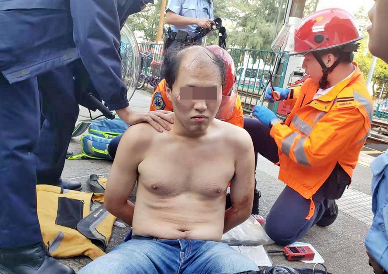 報稱無業的董栢輝(30 歲)被控於11月6 日在屯門圖謀殺何君堯。圖為疑兇被制服後接受治療。