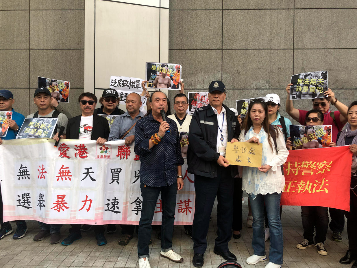 「愛港聯盟」近20人到灣仔警察總部請願,他們高叫「買兇殺人,無法無天」等口號。團體形容,針對區選候選人何君堯所發生的行刺事件,是一宗政治刺殺。認為兇徒用刀刺向何君堯心臟部位圖取其性命,顯然是想攞命。