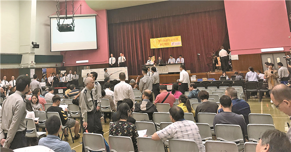 一連兩日的年宵攤位競投昨日開始。受修例風波影響,今年參與競投人數明顯較往年少,現場所見不足百人,首日競投包括3個快餐熟食攤檔及120個濕貨攤檔,其中面積最大、鄰近銅鑼灣出入口的熟食攤檔(快餐檔A),經兩名競投者11次叫價後,終由1名女士以202000元投得,比底價187430元高7.7%,但相較去年成交價52萬元,則顯著下跌達六成;另外兩個快餐攤檔B及C,則分別以略高於底價的100590元,及底價100390元投得。