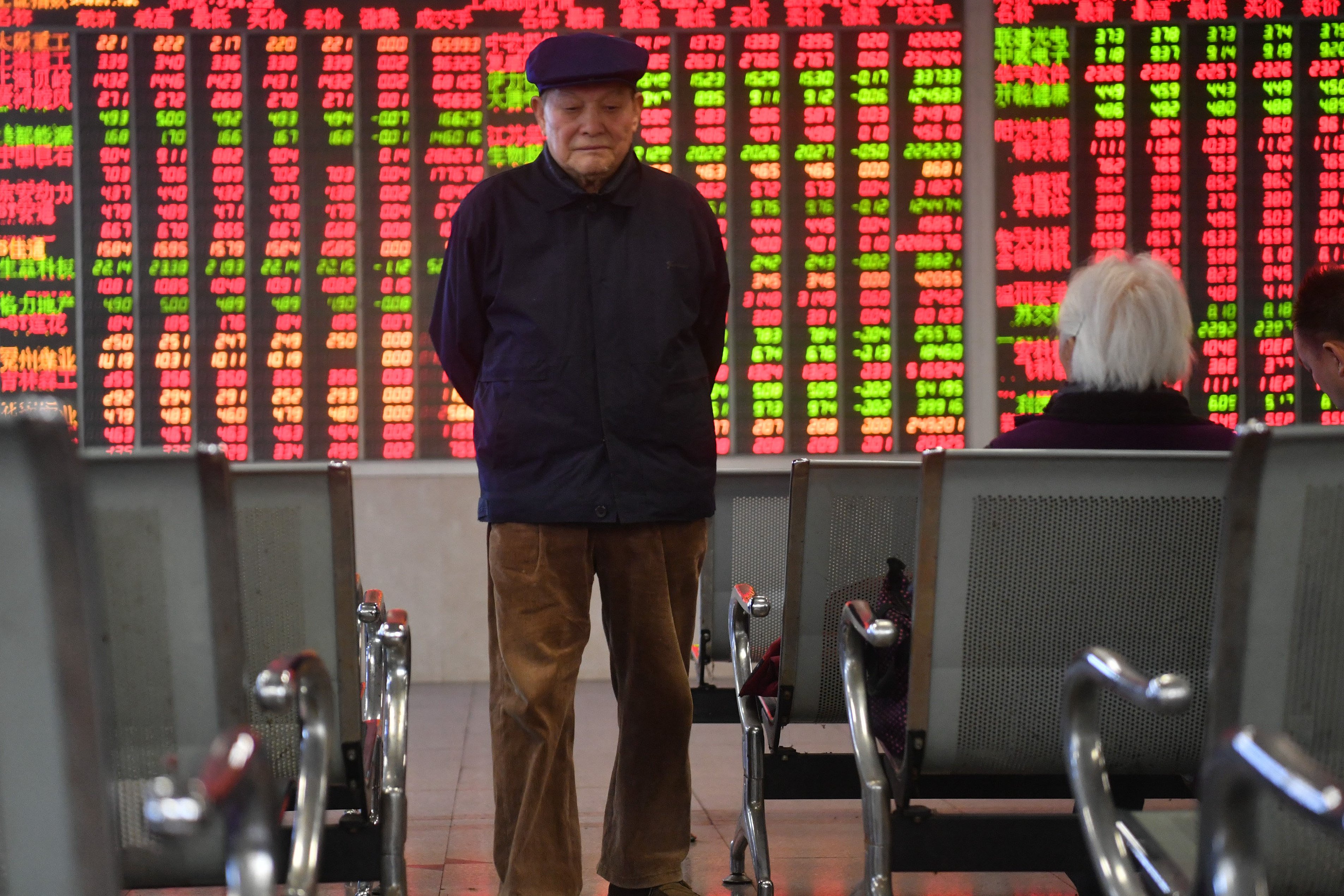 圖為成都某證券營業部股民昨日從大盤顯示屏前走過。 中新社