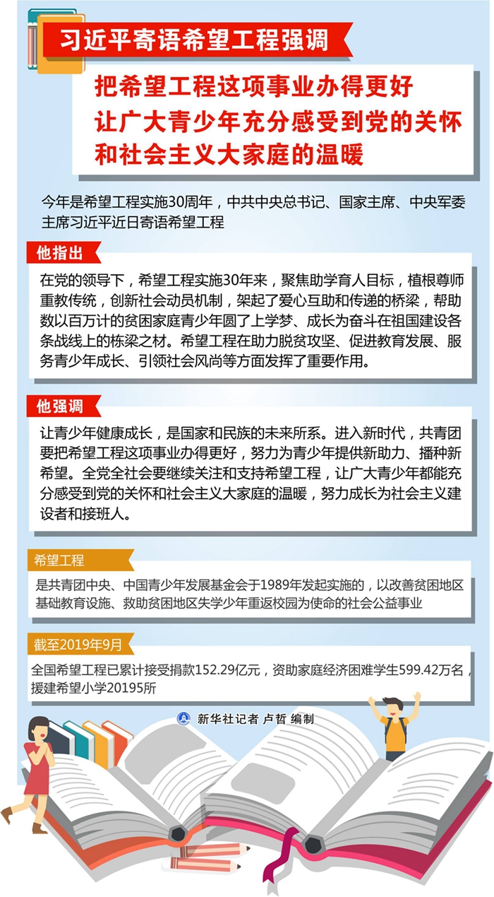 习近平寄语希望工程强调 把希望工程这项事业办得更好 让广大青少年充分感受到党的关怀和社会主义大家庭的温暖