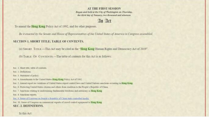 看过法案文本后就会发现,该法案其实是一群美国政客以伤害香港人民、在港美国企业利益为代价,捞取政治资本的一场“政治秀”。