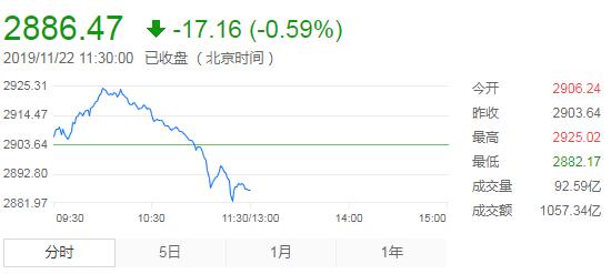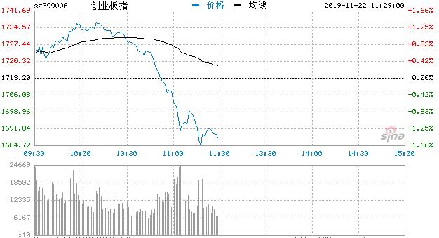 11月21日消息,两市高开,开盘后指数迅速拉升,创指涨逾1%。盘面上,锂电池板块活跃,两市个股普涨。指数经过早盘的震荡走高之后开始单边走弱,三大指数集体翻绿,医药、科技蓝筹跳水。临近上午收盘,指数再度下挫,创业板指跌逾1.5%,军工板块逆势拉升。总体上,两市个股跌多涨少,炸板率较高,大盘总体情绪偏弱,赚钱效应较差。截止上午收盘,沪指报2886.47点,跌0.59%;深成指报9651.72点,跌1.26%;创指报1688.07点,跌1.47%。
