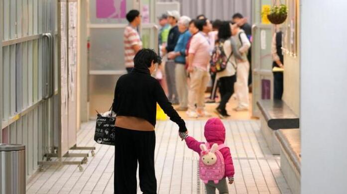 11月24日,香港特别行政区举行第六届区议会选举。图为选民一大早扶老携幼前往投票站投票。 中新社