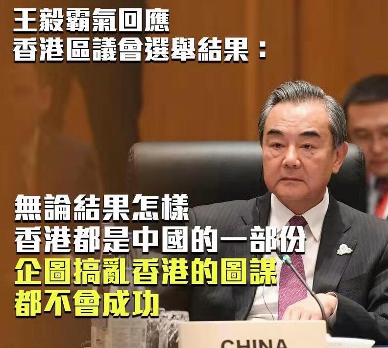 当地时间2019年11月25日,国务委员兼外交部长王毅在东京就日本媒体的询问表示,不管香港局势如何变化,有一点非常清楚,那就是香港是中国领土的一部分,是中国的一个特别行政区,任何企图搞乱香港、损害香港稳定繁荣的企图都不可能得逞。