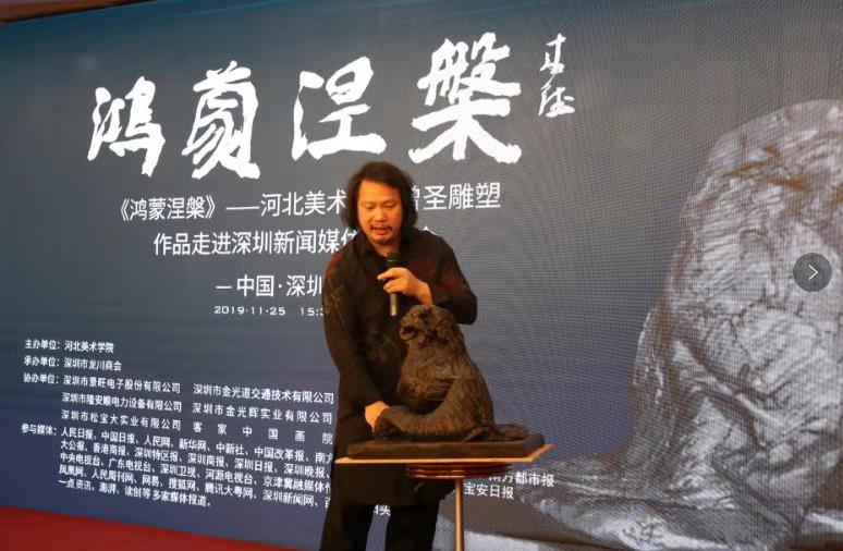 【香港商報訊】記者焦家志報道: 11月25日,由河北美術學院主辦、深圳市龍川商會承辦的「曾聖雕塑新作《鴻蒙》發佈會」在深圳成功舉辦。原中國國家畫院副院長、著名書畫家曾來德,河北美術學院院長甄忠義,深圳市龍川商會會長劉紹柏,河北美術學院雕塑院院長曾維林,深圳畫院院長徐章,著名油畫家胡遠駿,客家中國畫院院長曾憲輝,雕塑家馬若特、王自興以及來自全國的藝術家及各大媒體出席發佈會。