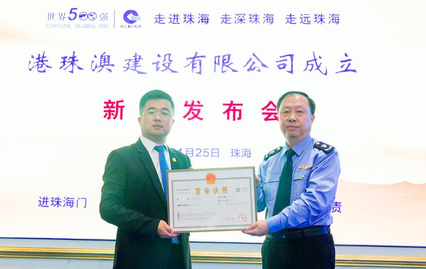 橫琴工商局為港珠澳建設有限公司頒發執照