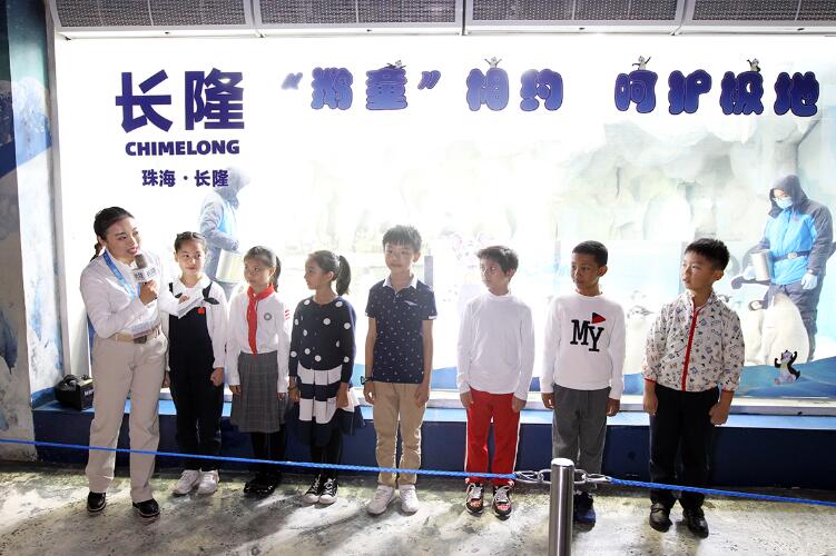 25日,珠海長隆海洋王國邀請來自廣州南方小記者以及珠海容閎小學的學生代表,與今年新生的小帝企鵝交朋友。學生代表們換上小小保育員的服裝,進入企鵝館內,給小帝企鵝們餵食。本次活動旨在加強極地科普教育,普及極地科學知識,激發學生認識極地、瞭解極地、探索極地的興趣,提高他們保護動物和呵護極地的意識。