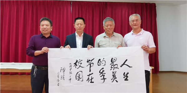 譚談老師為博羅縣羅陽二中題寫 「人生最美的季節在校園」 。 盧偉攝