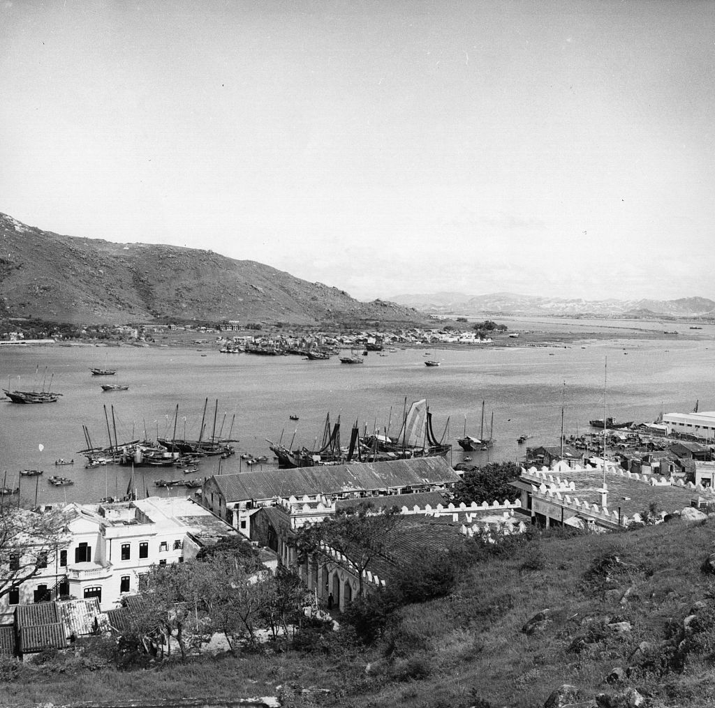 那个时代,当地人多以捕鱼为生。图为约1950年的澳门,远眺海湾。