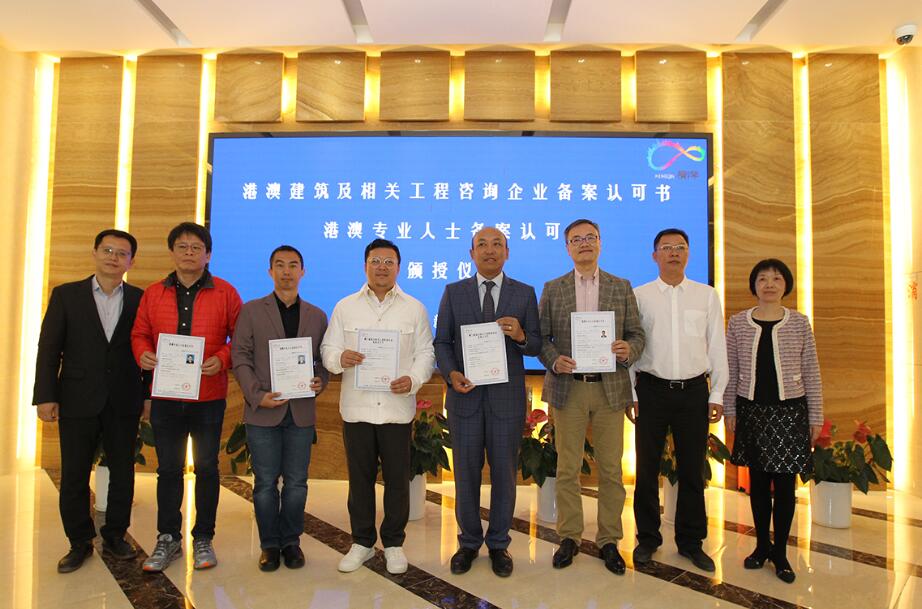 當日上午,橫琴新區管理委員會主任楊川和黨委副書記李偉輝在橫琴新區綜合服務中心現場,分別為首批港澳建築專業人士、港澳企業頒授了《備案認可書》。同時具有香港和澳門註冊執業資格的余偉清,來自澳門的冼偉雄、周子鍵,喜獲首批港澳專業人士備案認可書。來自澳門的澳馬建築工程有限公司、栢傑工程顧問有限公司,分別作為澳門施工企業和工程顧問公司獲首批港澳企業備案認可書。