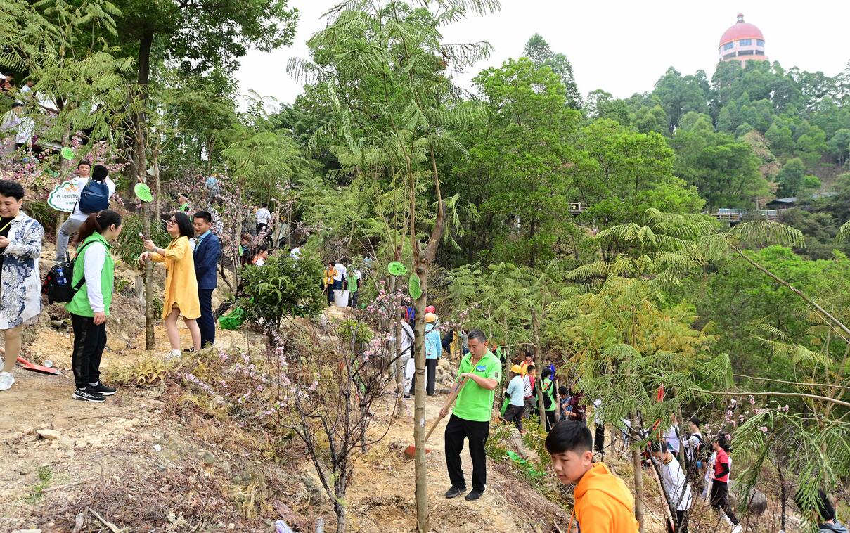 【香港商报讯】记者程功明报道:暖冬时节,位于东莞樟木头镇的观音山风景区,温暖如初,异木棉花开正艳,高植被覆盖率的生态环境吸引了一波又一波的游客走进森林“吸氧”,感受森林的多彩魅力,回归生活的初心。15日,东莞观音山风景区举办了一场别样“有氧”的森林文化体验活动——粤港澳首届观音山森林文化节开幕式暨“木林森”计划启动仪式,迎来众多企业代表、家庭、游客参加。活动现场,“万人签名”、森林有氧跑、共植“凤凰木”等丰富精彩的森林文化体验环节,通过与大自然的“有氧”互动、畅享“森”呼吸,在观音山守护“地球保护色”,当好“森林卫士”,感知这一场精彩纷呈的森林文化盛宴。
