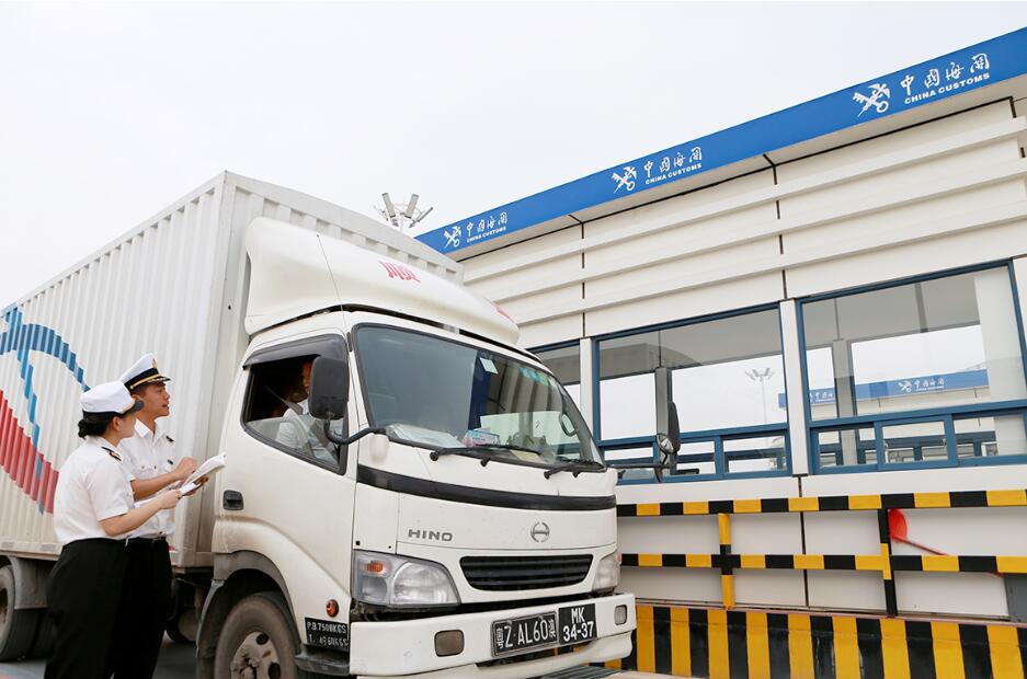 拱北海關關員在驗放貨物車輛
