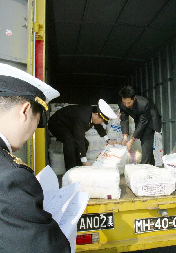海關關員在查驗貨物