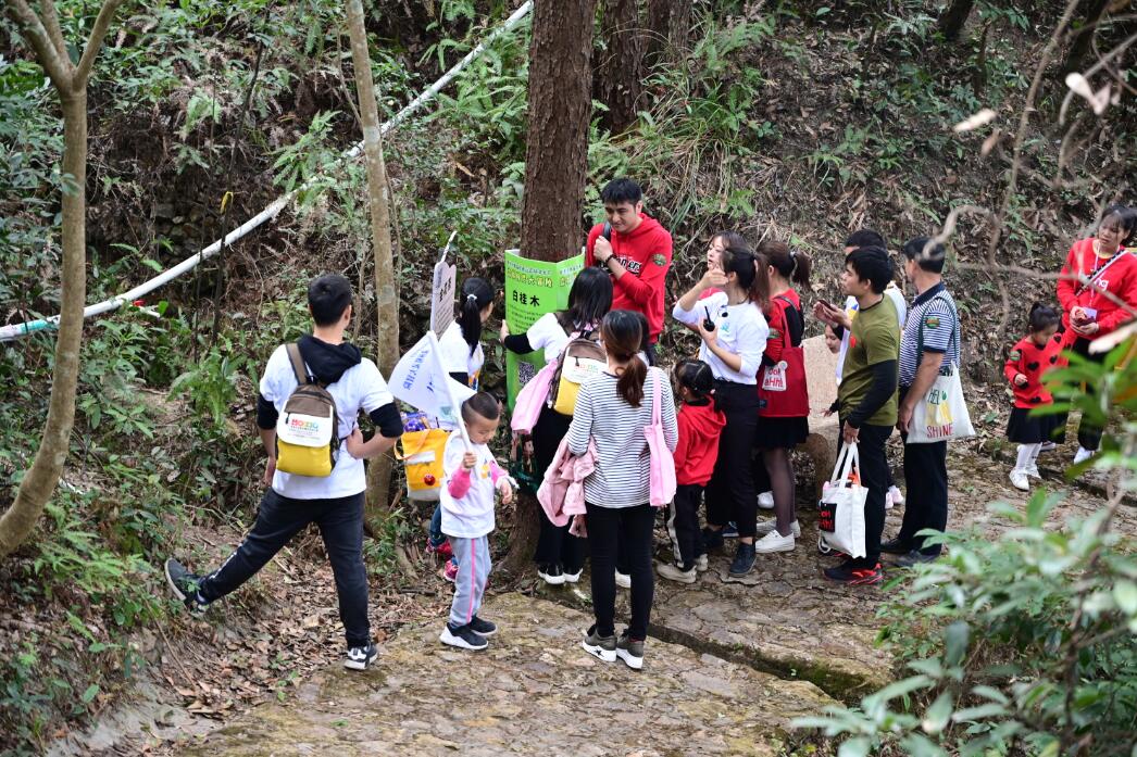 50組親子家庭一路而上,登高賞景、打卡闖關,不亦樂乎,在趣味尋寶的同時,也鍛煉了團體合作能力,享受歡樂的親子時光;同時,小朋友們在家長的陪同下,在大自然這個“行走的課堂”中,體驗在森林行走的感覺,聆聽大自然最真實的聲音。“對于孩子們來說,這段旅程最重要的是收獲知識和成長。路線的設置正適合小朋友們通過自己的能力闖關,家長只需在旁鼓勵、提醒,有親子互動,也有趣味的挑戰,很有意義。”來自東莞長安的韋先生完成打卡任務到達終點時,興奮地講述自己“尋寶”的有趣過程。
