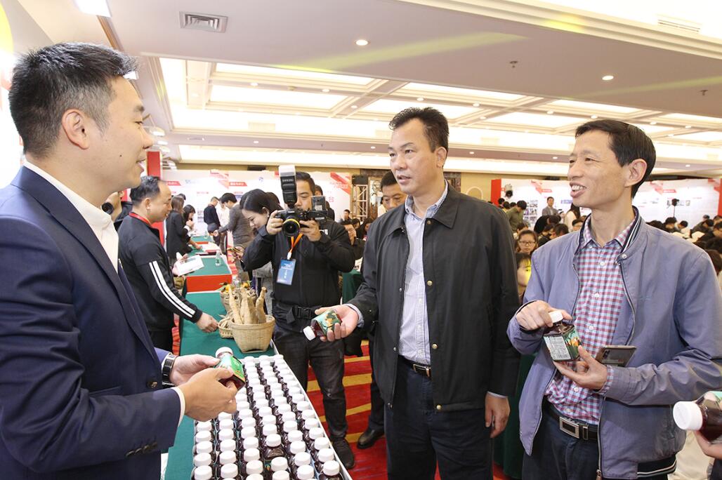 吳少強(中)在參觀詢問參展展品
