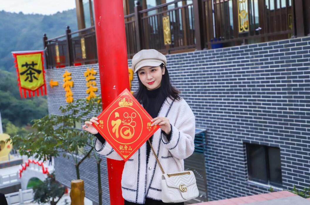 據悉,“福緣薈聚 歡樂迎新”的主題歌合著“姻緣福地”的主旋律,近日觀音山全面升級,除隆重推出姻緣新景點鵲橋、文化景點魁星苑、金鰲等,還有值得期待的系列迎新活動,吸引廣大市民游客登高出游,以新年許心愿、吸福氧、接“福”字、結福緣、游福山的形式,為迎接新年做足了準備。觀音山換上了迎新“靚裝”,沿途以寓意新年吉祥、喜慶歡樂的大紅燈籠高高懸掛,在一片碧綠之景中增添了一片火紅色彩。新年伊始,觀音山在山頂吉祥苑的許愿池旁設置心愿墻,讓每位游客在此寫上自己的新年愿望。此外,景區準備了10萬份“福”字貼向游客免費發放,讓觀音山的“福”傳至千家萬戶。