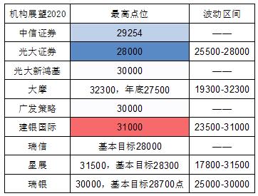 【香港商报网讯】 2020年消息,港股各大券商对今年预测点位出炉,大摩最牛看高恒指32300点,多数券商给予恒指目标30000点以上。