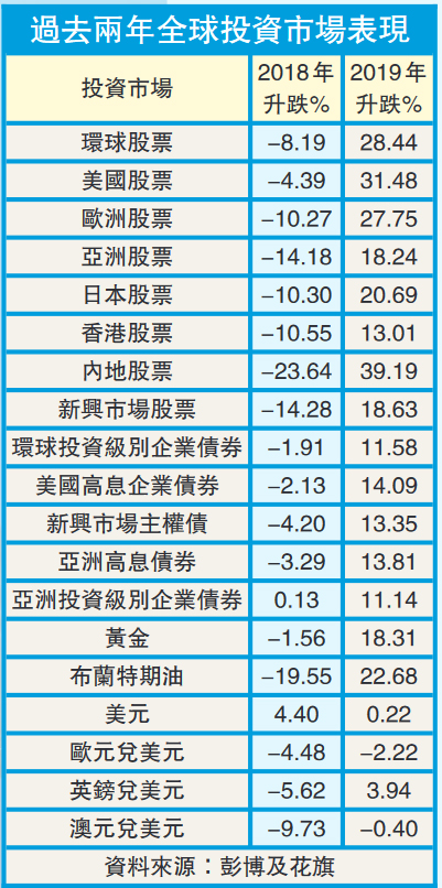 花旗預計全球企業整體2020年盈利增長為7%,環球股票全年回報料介乎6%至8%,建議投資者適度分散於環球市場,又預期較高股息增長策略或有利回報。