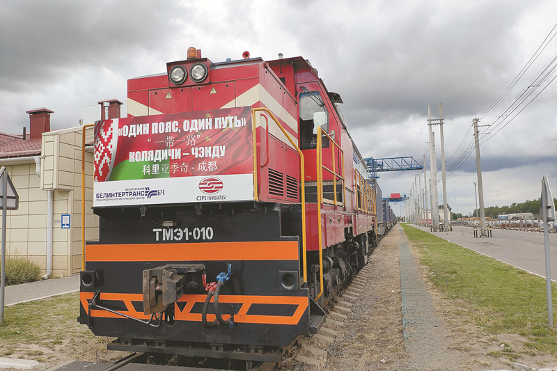 首趟中歐班列(明斯克-成都)運貿一體化回程班列從白俄羅斯首都明斯克的科里亞季奇車站啟程。 中新社