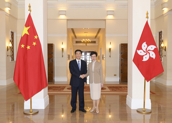 林鄭月娥歡迎駱主任來港履新。她表示前年駱主任以山西省委書記身份訪港,雙方有很好的交流,令她感到駱主任對香港的關心。林鄭指,駱主任雖然剛履新,但已熟悉香港的情況,期望未來與駱主任加強溝通合作,推展各項涉及內地和香港的工作。