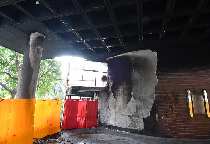 被暴徒縱火的出入口仍待修复。
