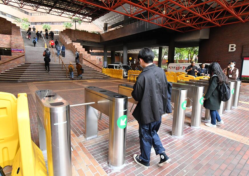 现场所见,校園現時開放三個出入口,全部均加裝出入閘機,教職員及學生須持有效證件才可進入,公眾人士則需登記。