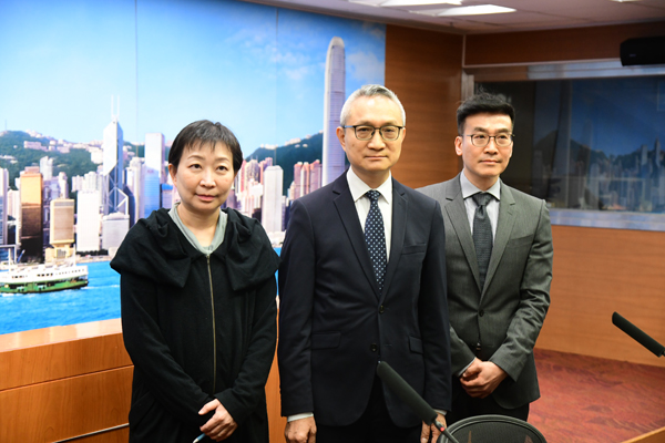 食衛局副局長徐德義(中)會見傳媒時指出,是次行程掌握了確診41病例流行病學資料,有助加強本港監察。 記者 崔俊良攝