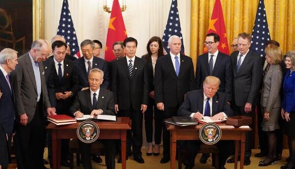 在協議簽署儀式上,國務院副總理劉鶴和美國總統特朗普分別代表中美雙方簽署了協議文本。這份協議文本來之不易,是雙方克服了諸多分歧、歷經多次談判之後才最終敲定。第一階段經貿協議中,雙方主要在知識產權和專利保護、技術轉讓、食品和農產品貿易、金融服務、擴大貿易進口等方面形成一系列共識條款,同時亦就未來進一步談判安排達成一致。從協議內容可以看出,第一階段協議已經解決部分核心爭議問題,雙方都展現出了誠意朝最終解決經貿摩擦的方向前行。