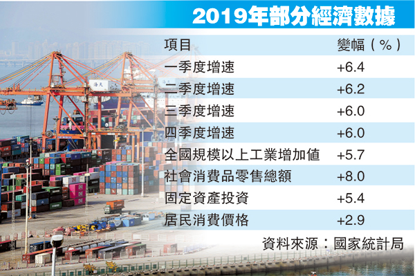 2019年GDP增6.1%符預期