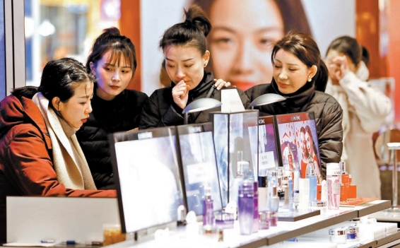 中國的中等收入群體為形成超大規模消費市場奠定了人口基礎。圖為市民在商場內選購商品。 資料圖片