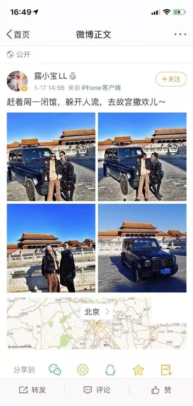 一夜间沸腾的社交平台,愤怒的舆论,曾经作为社交平台爆款的纪录片《我在故宫修文物》,也被网友套用片名句式改成了“我在故宫开大奔”。究竟是谁把豪车开到故宫里面“撒欢儿”?如此张狂、不知所谓的个性,让网友顿时深挖当事人显然偏爱炫耀的各种社交平台账号,各种信息海量涌出,让人大开眼界……