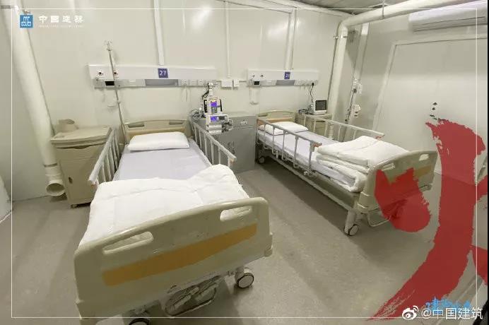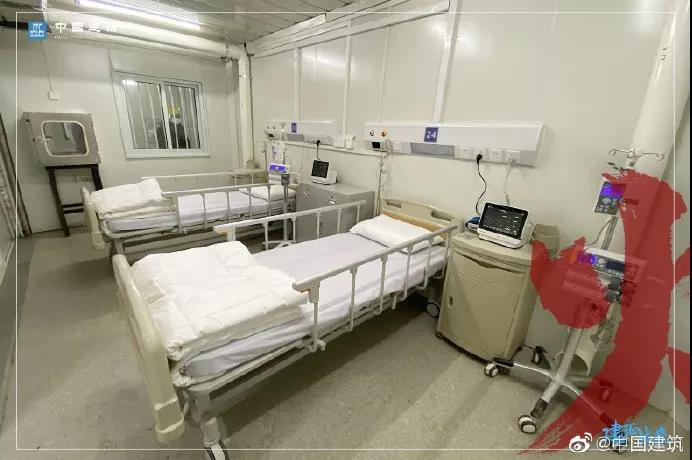 2月2日,火神山医院完成军地交接,总台央视记者探访医院内部:每个病房布置两张专用病床,房间中有一个单独的小窗口,还有一个玻璃窗,方便医护人员拿取物品。病房里的空调、通风设施、消毒设备全部安装到位。病房还配备一个独立卫生间,内置马桶、洗脸池、热水器、淋浴等设施。