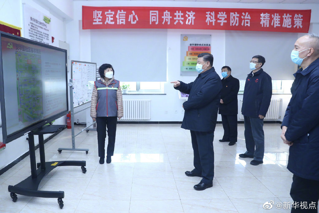 习近平首先来到北京市朝阳区安贞街道安华里社区,了解基层一线疫情联防联控情况。在社区居民委员会疫情防控指挥部,习近平听取了安贞街道和安华里社区开展联防联控情况介绍。习近平对社区采取多项措施,落实防控责任,实现入户排查、重点群体监控“两个全覆盖”等做法表示肯定。他强调,社区是疫情联防联控的第一线,也是外防输入、内防扩散最有效的防线。把社区这道防线守住,就能有效切断疫情扩散蔓延的渠道。全国都要充分发挥社区在疫情防控中的阻击作用,把防控力量向社区下沉,加强社区各项防控措施的落实,使所有社区成为疫情防控的坚强堡垒。要以疫情防控工作成效来检验和拓展“不忘初心、牢记使命”主题教育成果,发挥基层党组织政治引领作用和党员先锋模范作用,把社区居民发动起来,构筑起疫情防控的人民防线。