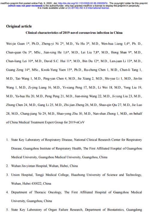 以「中國2019年新型冠狀病毒感染的臨床特徵」為題的最新研究論文由鍾南山院士攜手來自全國抗疫一線的37位作者共同完成。論文對截至1月29日已確診的、來自全國31個省市自治區552家醫院的1099例新冠肺炎患者的臨床特徵進行回顧性研究發現,在1099名新冠肺炎患者中,483人為武漢當地居民。在武漢以外地區,26%的患者未在近期前往武漢,或者未與來自武漢的人有過接觸史。同時,僅1.18%的患者與野生動物有過直接接觸,31.3%的患者去過武漢,71.8%的患者與來自武漢的人員接觸過。這些結果表明,新冠肺炎疫情不排除「超級傳播者」的存在。