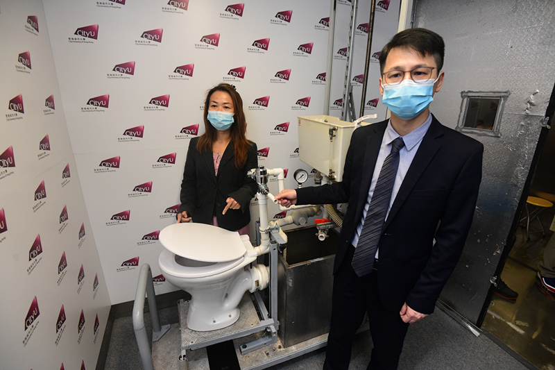 城大研究發現,沖廁水珠可濺起1米高,導致細菌及病毒散播。 記者 崔俊良攝